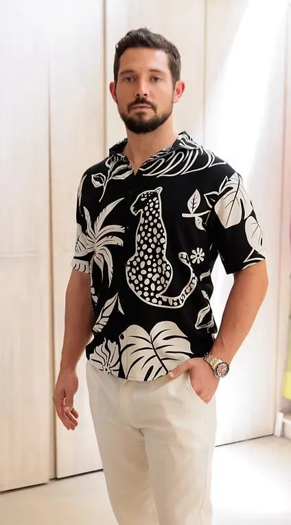 Available in two versatile colors—classic white and timeless black—this shirt features a unique and eye-catching print that adds a touch of personality to your look. Whether you’re dressing up for a casual event or just looking to add a little flair to your everyday style, this shirt is a must-have.